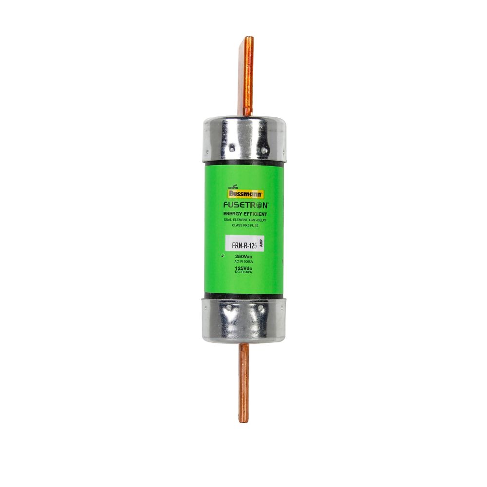 Eaton Bussmann series FRN-R fuse, 125 A, Dual, Class RK5, Non-indicating, Blade end x blade end, 10 sec at 500%, 20 kAIC at 125 Vdc|200 kAIC at 250 V, Standard, 250 V, 125 Vdc