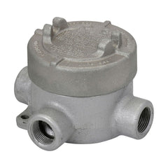 Eaton Crouse-Hinds series Condulet EAJ conduit outlet box with cover, 5" cover opening diameter, Feraloy iron alloy, T shape, 1-1/2"