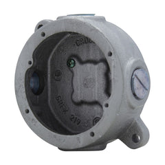 Eaton Crouse-Hinds series Condulet GRF tapped outlet box with lugs, 1-3/8" inside depth, Copper-free aluminum, Surface mount, 4 hubs, 3 plugs, Blank back boss, 3/4"