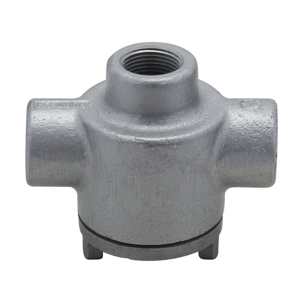Eaton Crouse-Hinds series Condulet GUA conduit outlet box with cover, 2" cover opening diameter, Feraloy iron alloy, D shape, 3/4"