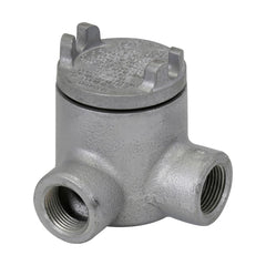 Eaton Crouse-Hinds series Condulet GUA conduit outlet box with cover, 2" cover opening diameter, Feraloy iron alloy, L shape, 3/4"