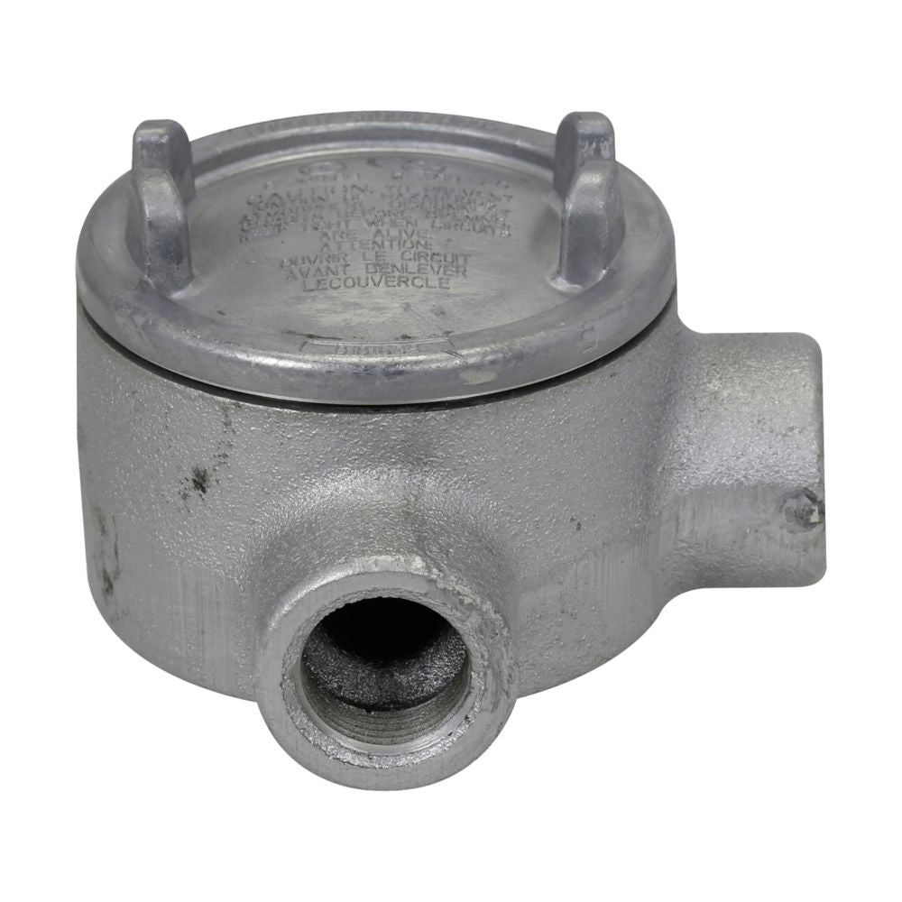 Eaton Crouse-Hinds series Condulet GUA conduit outlet box with cover, 5" cover opening diameter, Feraloy iron alloy, M shape, 2"