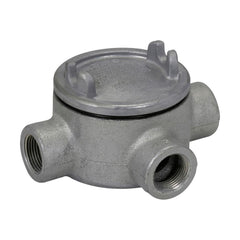 Eaton Crouse-Hinds series Condulet GUA conduit outlet box with cover, 3-5/8" cover opening diameter, Feraloy iron alloy, T shape, 1-1/4"