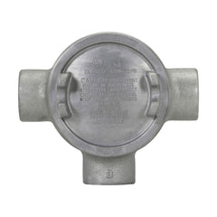Eaton Crouse-Hinds series Condulet GUA conduit outlet box with cover, 5" cover opening diameter, Feraloy iron alloy, T shape, 2"