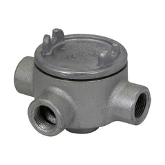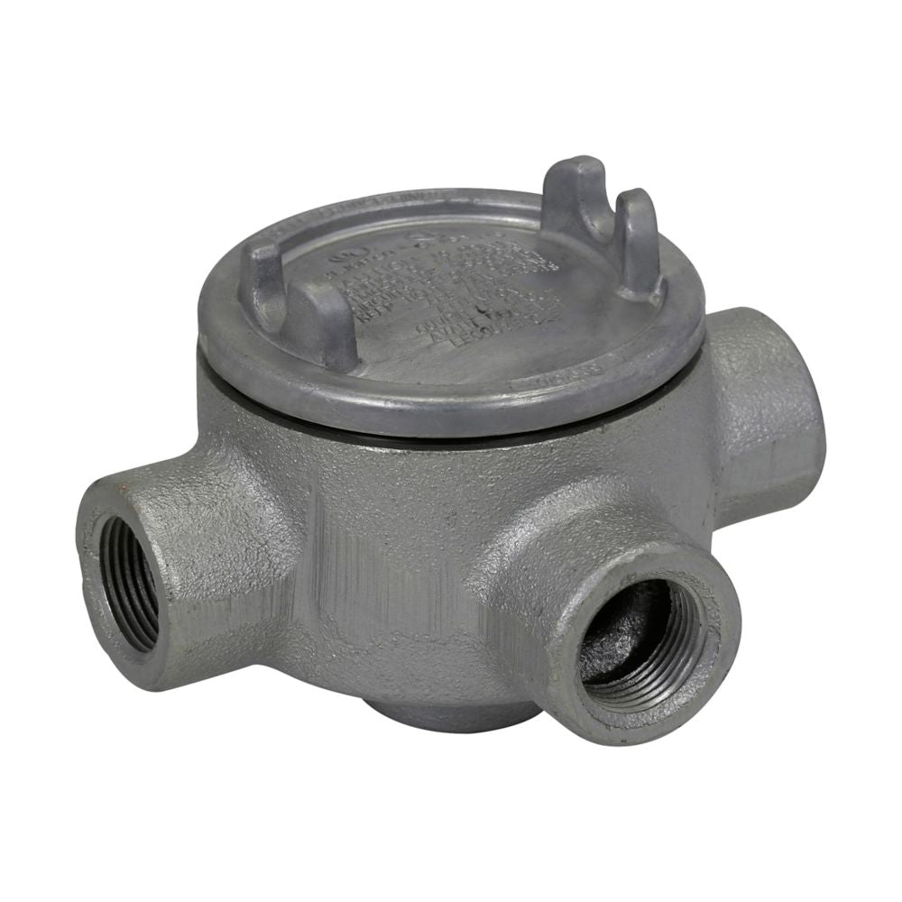 Eaton Crouse-Hinds series Condulet GUA conduit outlet box with cover, 3" cover opening diameter, Feraloy iron alloy, W shape, 1/2"