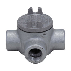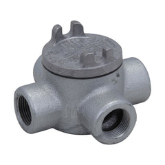 Eaton Crouse-Hinds series Condulet GUA conduit outlet box with cover, 3" cover opening diameter, Feraloy iron alloy, X shape, 1/2"