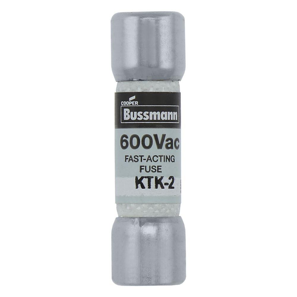 Eaton Bussmann series KTK fuse, Control circuits, Lighting circuit protection, Meter circuits, 2 A, Non-indicating, Ferrule end x ferrule end, 100 kAIC at 600 V, Melamine tube|Nickel-plated bronze endcap, 600 V