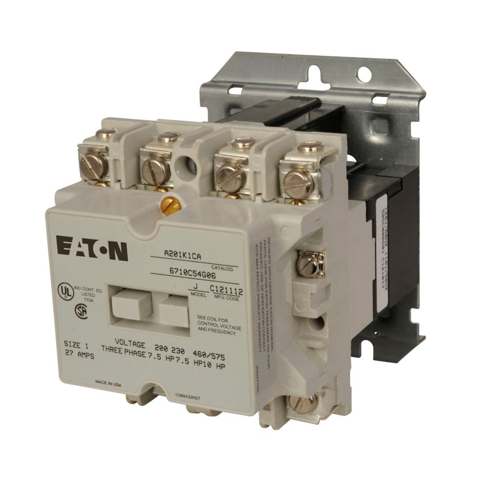 Eaton Freedom NEMA motor control contactor, Non-Reversing Front Connected Contactors, 27A, Front Connected, Three-pole open, Size: 1, A200 series, 240V at 60 Hz coil