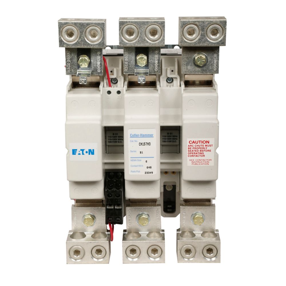 Eaton NEMA freedom series Non-reversing contactor, 150 hp at 208V, 200 hp at 240V, 400 hp at 480,600V maximum horsepower, 120V/60 Hz or 110V/50 Hz coil voltage, 540A, Three-pole, Size 6
