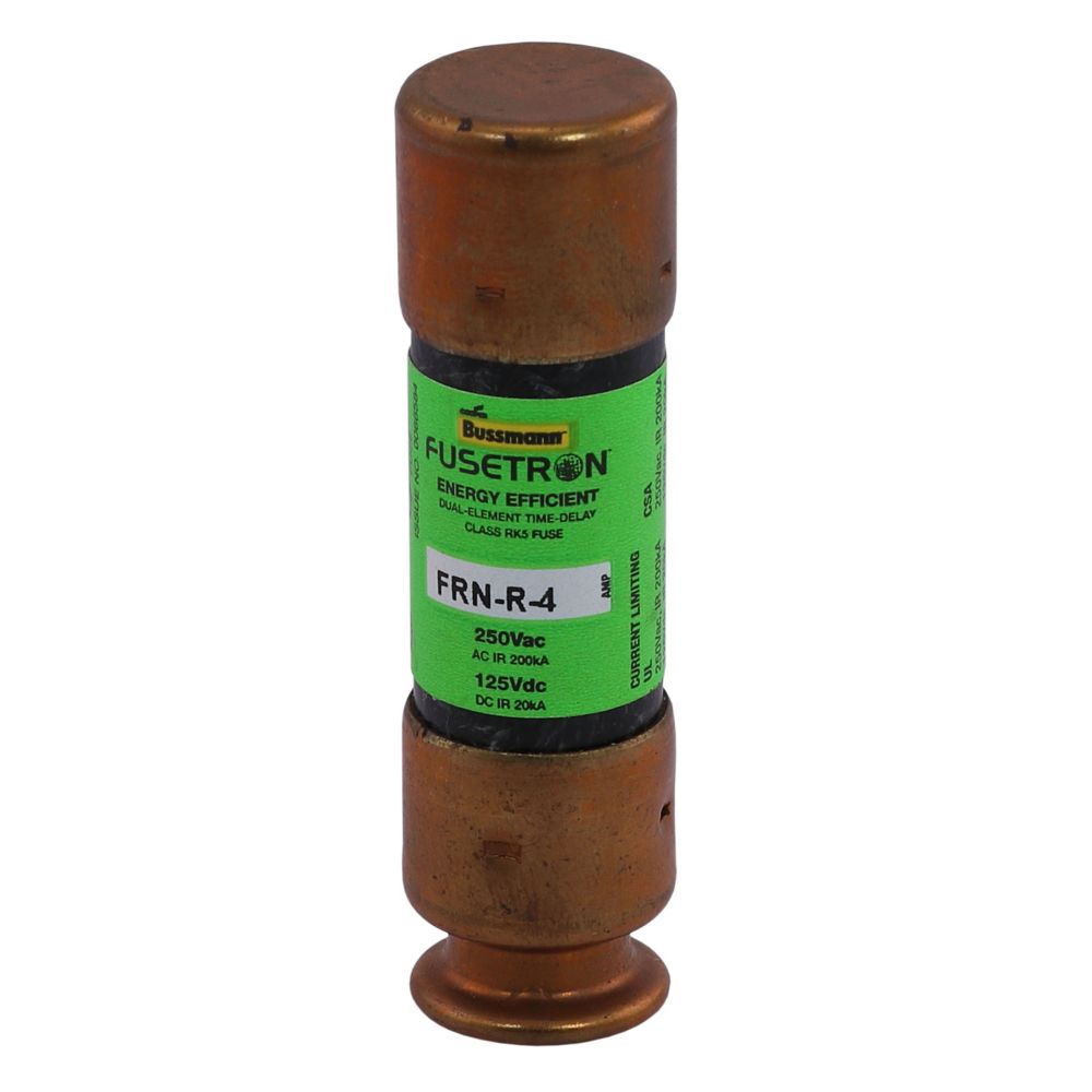Eaton Bussmann series FRN-R fuse, 4 A, Dual, Class RK5, Non-indicating, Ferrule end x ferrule end, 8 sec at 500%, 200 kAIC at 250 V|20 kAIC at 125 Vdc, Standard, 250 V, 125 Vdc