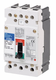 Eaton Series G molded case circuit breaker, EG-frame, EG, Complete breaker, Fixed thermal, fixed magnetic trip type, Three-pole, 60A, 600Y/347 Vac, 25 kAIC at 240 Vac, 18 kAIC at 480 Vac, Line and load, 50/60 Hz