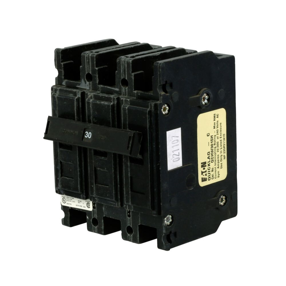 Eaton Quicklag Type QCHW Industrial Thermal-Magnetic Circuit Breaker,Industrial circuit breaker,30 A,22 kAIC,Three-pole,240 V,Thermal-magnetic,Cable-in/cable-out,QCHW,Fixed