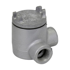 Eaton Crouse-Hinds series Condulet GUA conduit outlet box with cover, 2" cover opening diameter, Copper-free aluminum, L shape, 1/2"
