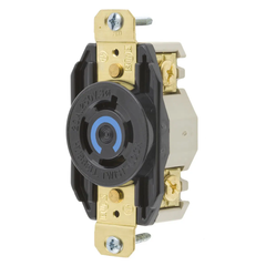 Locking Devices, Twist-Lock®, Industrial, Single Flush Receptacle, 20A 3 Phase 250V AC, 3-Pole 4-Wire Grounding, NEMA L15-20R, Screw Terminal, Nylon face, Back and side wired, Black.