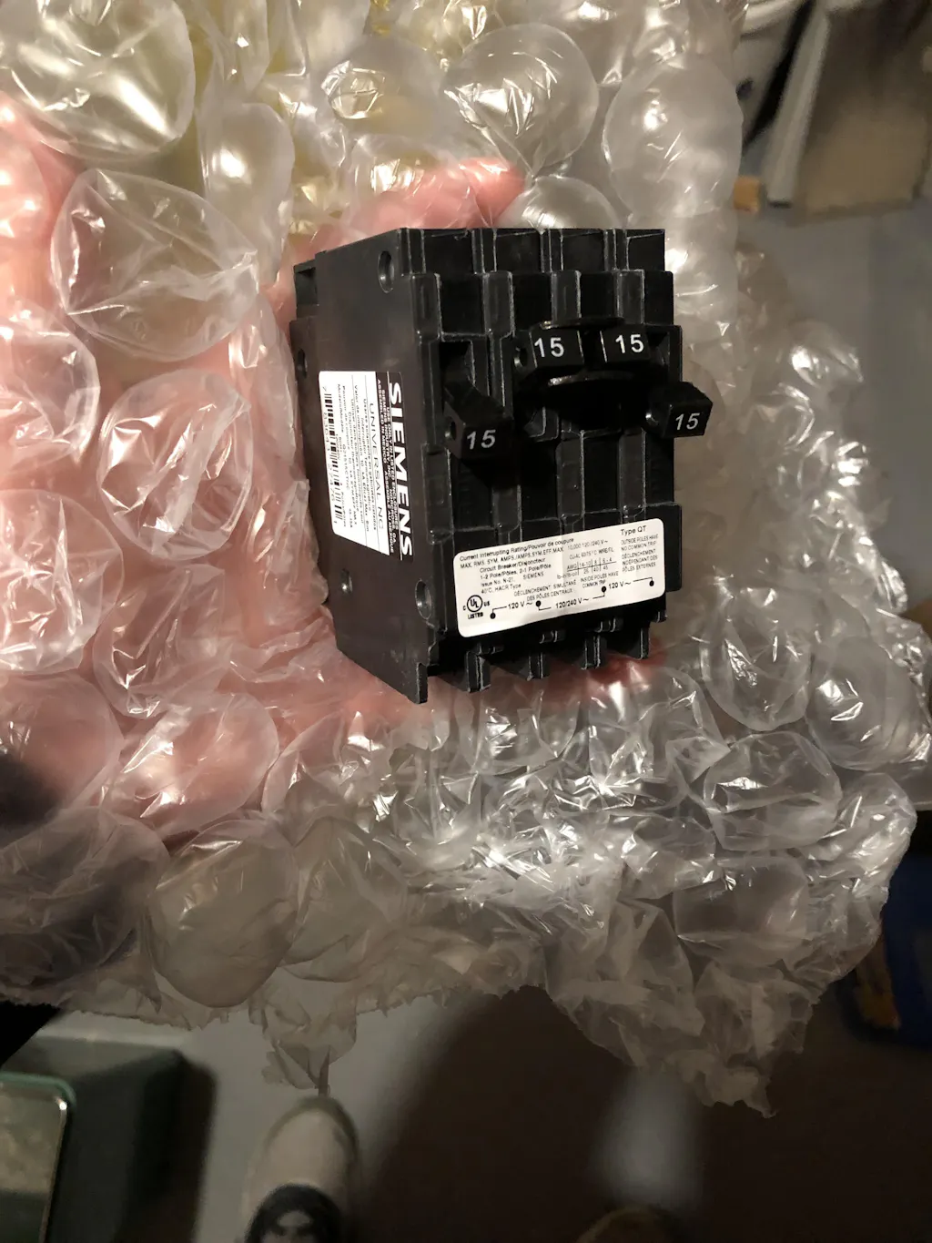 - Two 1 pole 15 amp breakers (120V) with one 2 pole 15 amp in middle (240V)