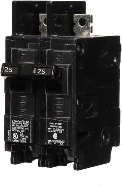 Siemens / ITE Bolt-On Circuit Breaker Its Compact And Easy to Install two poles molded case circuit breaker features a thermal magnetic over current protection system it has an interrupting rating of 22000 ampere a 120/240 Vac with a terminal load lug the circuit breaker has a BQ type of frame and it has voltage rating of 120/240 Volts at a frequency of 60 Hz it has a current rating of 25 amps at an operating temperature of 40 deg c circuit breaker is Ul listed and Csa certified.