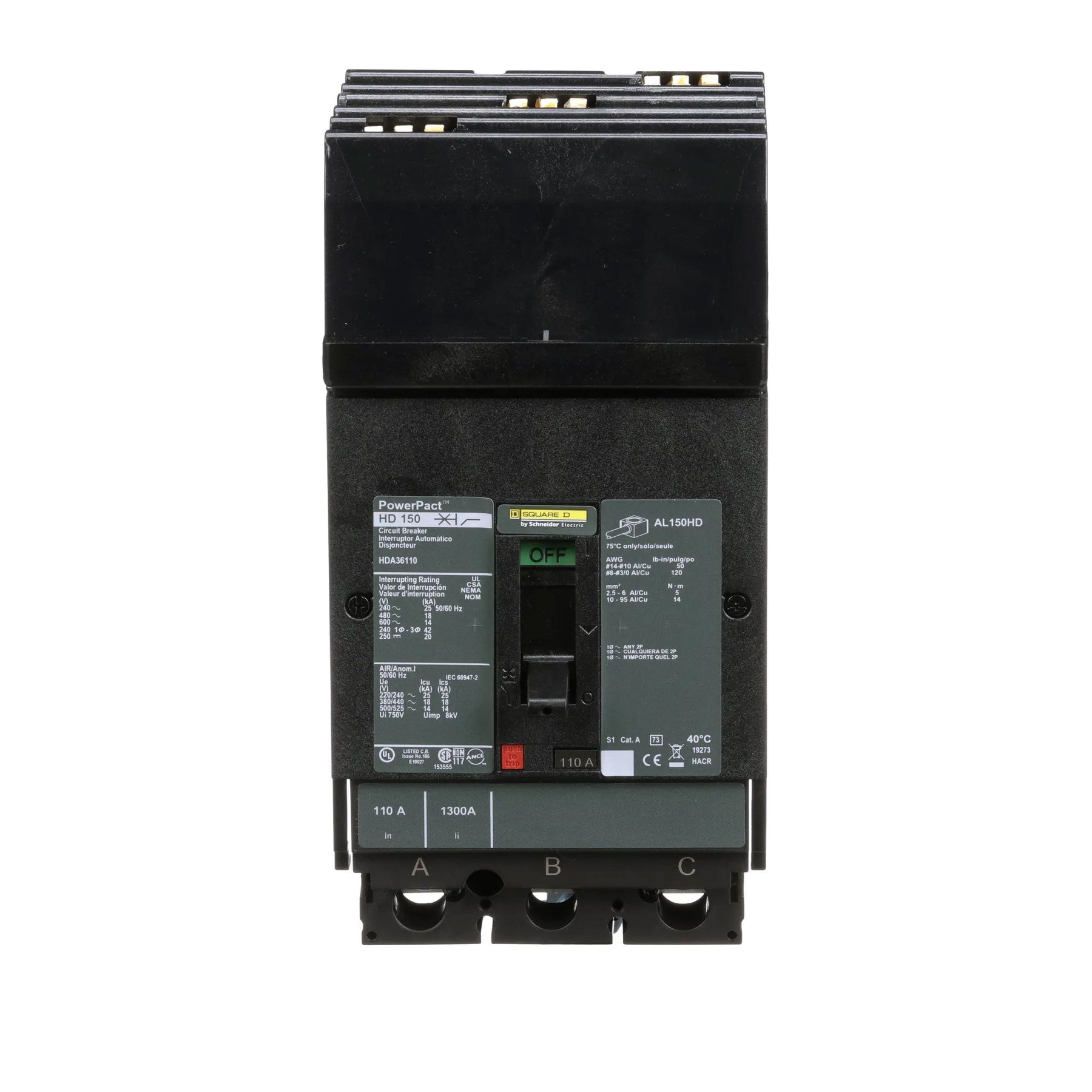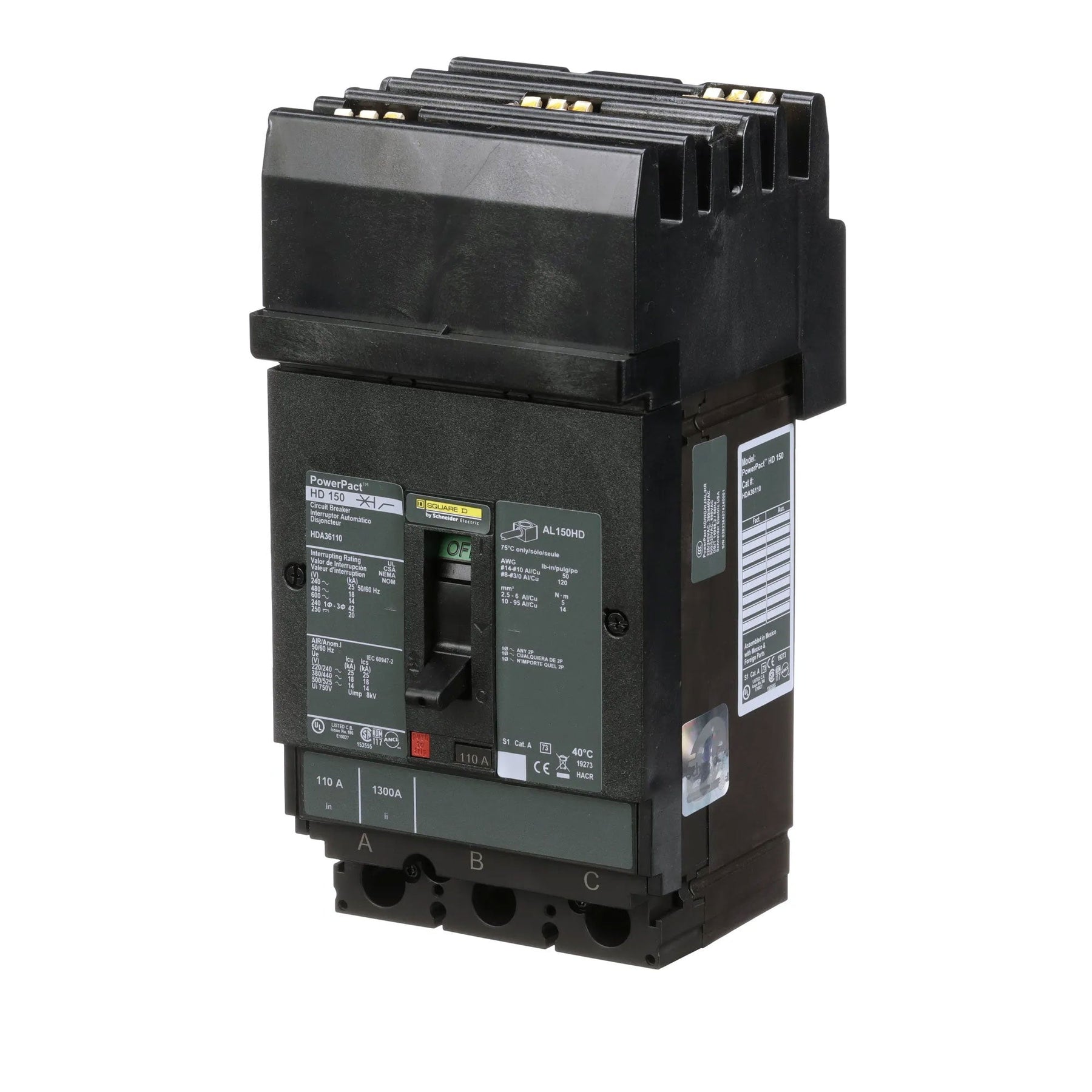 HDA36110 - Square D 110 Amp 3 Pole 600 Volt Plug-In Molded Case Circuit Breaker