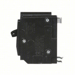 These QO series miniature circuit breakers plug into place in NQOD and NQ panelboards and QO load centers without requiring DIN rail or bolts, so they're easier to install than bolt-on and unit-mount breakers. They interrupt currents when low-level faults are detected in the circuit. They connect to the power supply through bus bars, which eliminates the need to pigtail wires and helps organize the panelboard or load center.