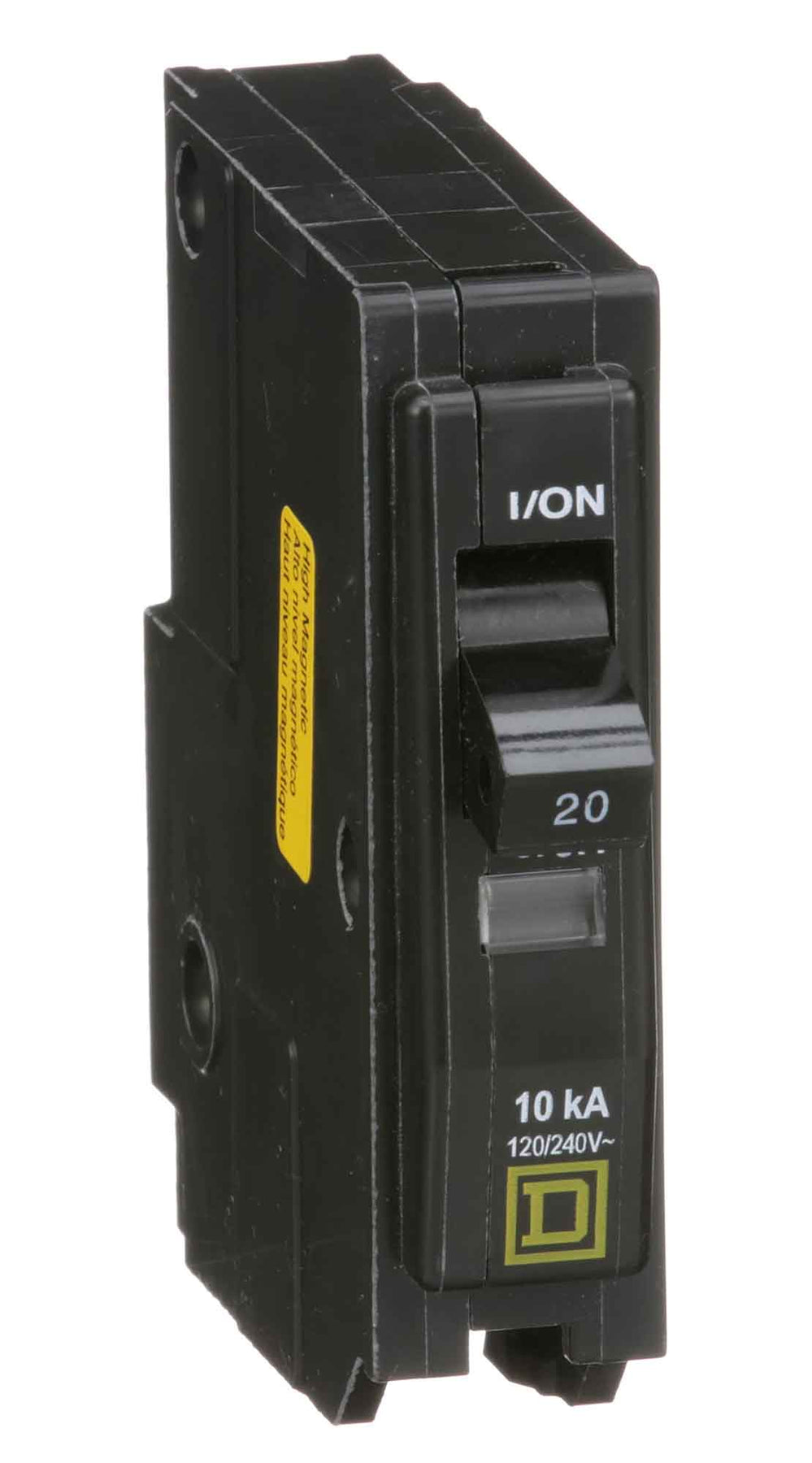 Square D, QO Series, type QO, 1P, 1PH, 20A, 120V, 10kA@120V, plug-in, high magnetic, thermal magnetic, suitable for QO Series load centers.
