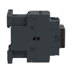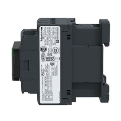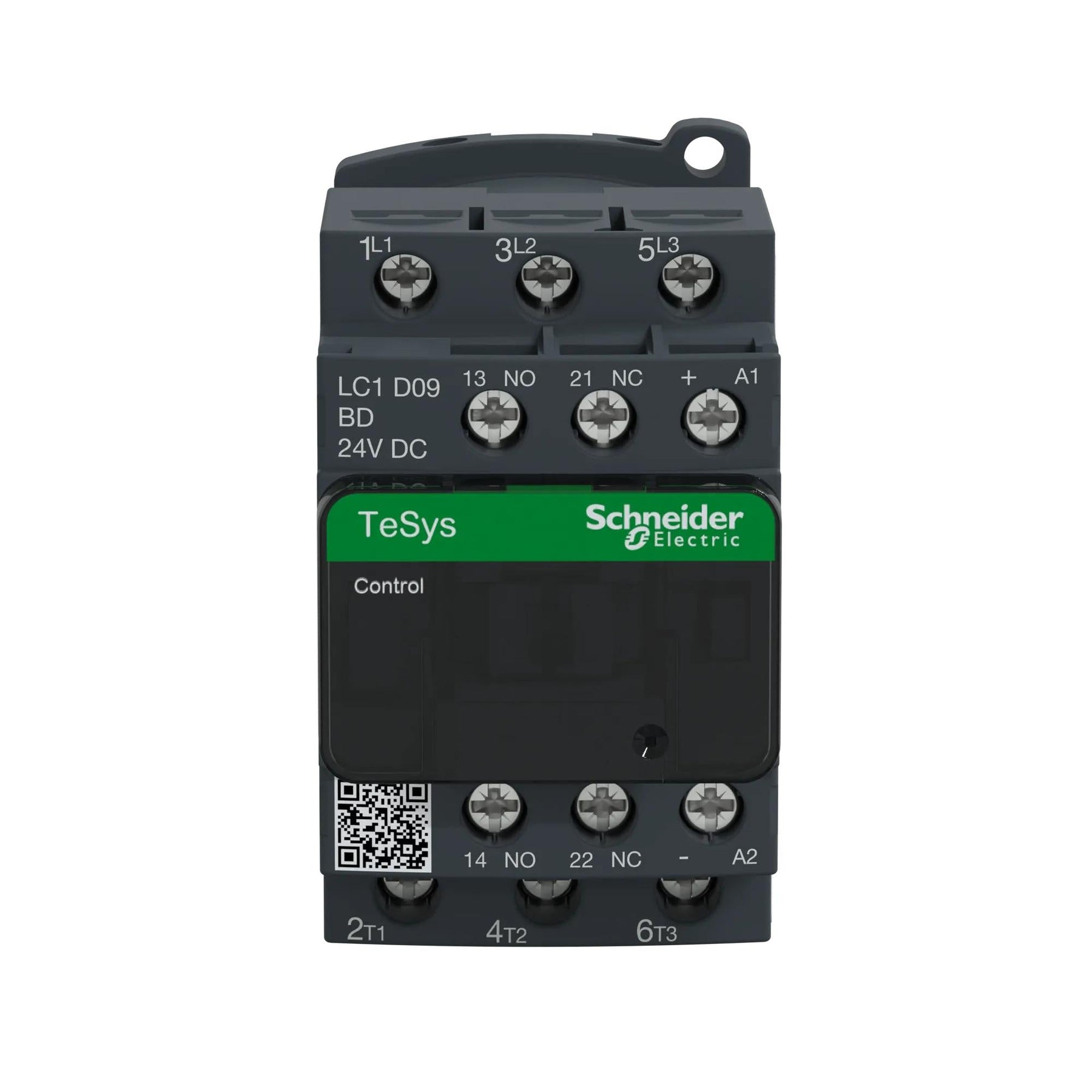 TeSys D contactors have been designed for perfect integration into control systems. They can be used to create motor starters for almost any type of application. TeSys D contactors are available in 13 contactor ratings for inductive motor applications up to 150 full-load amps and resistive loads up to 200 amps. This 9A inductive 3 pole IEC contactor can be mounted on DIN rail or mounted directly to a panel. Contactors have both Horsepower and Kw motor rating for international acceptance. Contactor is rated for 20HP at 200-208VAC, 25HP at 240VAC, 60HP at 480VAC and 60HP at 600VAC three phase. Contactor is also rated for 7.5HP at 115VAC and 15HP at 240VAC single phase. When used with a 480VAC up to 35A circuit breaker, this contactor can have a SCCR up to 85kA. When used with up to a 600VAC 25A Class J or CC fuse, this contactor can have a SCCR up to 100kA. Contactor is supplied with a 24 VDC coil with transient suppressor module. Contactor has one normally open and one normally closed auxiliary contact built-in as standard. The NC contact is mirror certified. Screw clamp terminals are used for load and auxiliary connections. An extensive line of accessories makes it easy to meet the requirements of most applications. The contactor is 3.15 inches tall, 1.77 inches wide and 3.39 inches deep. It weighs 0.71 lbs. Contactor is certified to UL, CSA, IEC, CCC, EAC and Marine standards. Contactor also meets the requirements of RoHS/REACh making it a Green Premium product.