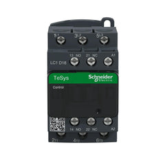 TeSys D contactors have been designed for perfect integration into control systems. They can be used to create motor starters for almost any type of application. TeSys D contactors are available in 13 contactor ratings for inductive motor applications up to 150 full-load amps and resistive loads up to 200 amps. This 18A inductive 3 pole IEC contactor can be mounted on DIN rail or mounted directly to a panel. Contactors have both Horsepower and Kw motor rating for international acceptance. Contactor is rated for 5HP at 200-208VAC, 5HP at 240VAC, 10HP at 480VAC and 15HP at 600VAC three phase. Contactor is also rated for 1HP at 115VAC and 3HP at 240VAC single phase. When used with a 480VAC up to 60A circuit breaker, this contactor can have a SCCR up to 85kA. When used with up to a 600VAC 40A Class J or CC fuse, this contactor can have a SCCR up to 100kA. Contactor is supplied with a 110 VAC 50/60 Hz coil. Contactor has one normally open and one normally closed auxiliary contact built-in as standard. The NC contact is mirror certified. Screw clamp terminals are used for load and auxiliary connections. An extensive line of accessories makes it easy to meet the requirements of most applications. The contactor is 3.03 inches tall, 1.77 inches wide and 3.39 inches deep. It weighs 0.73 lbs. Contactor is certified to UL, CSA, IEC, CCC, EAC and Marine standards. Contactor also meets the requirements of RoHS/REACh making it a Green Premium product.