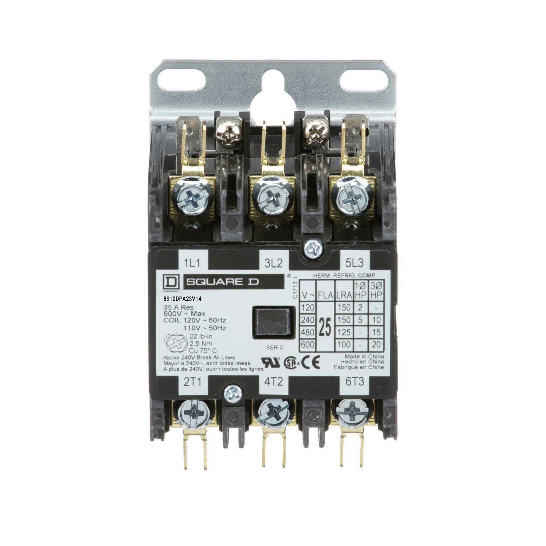 8910DPA23V14, Square D, Class 8910, type DPA, definite purpose contactor, 7.5HP @ 230V, 10HP @ 460/575V, 3P, 3PH, 25A, 600V, complete with 24V coil