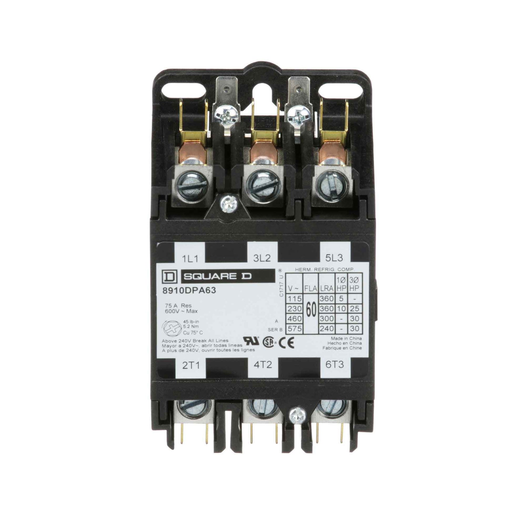 Product Specifications - 8910DPA63V14 Schneider Electric Definite Purpose Contactor