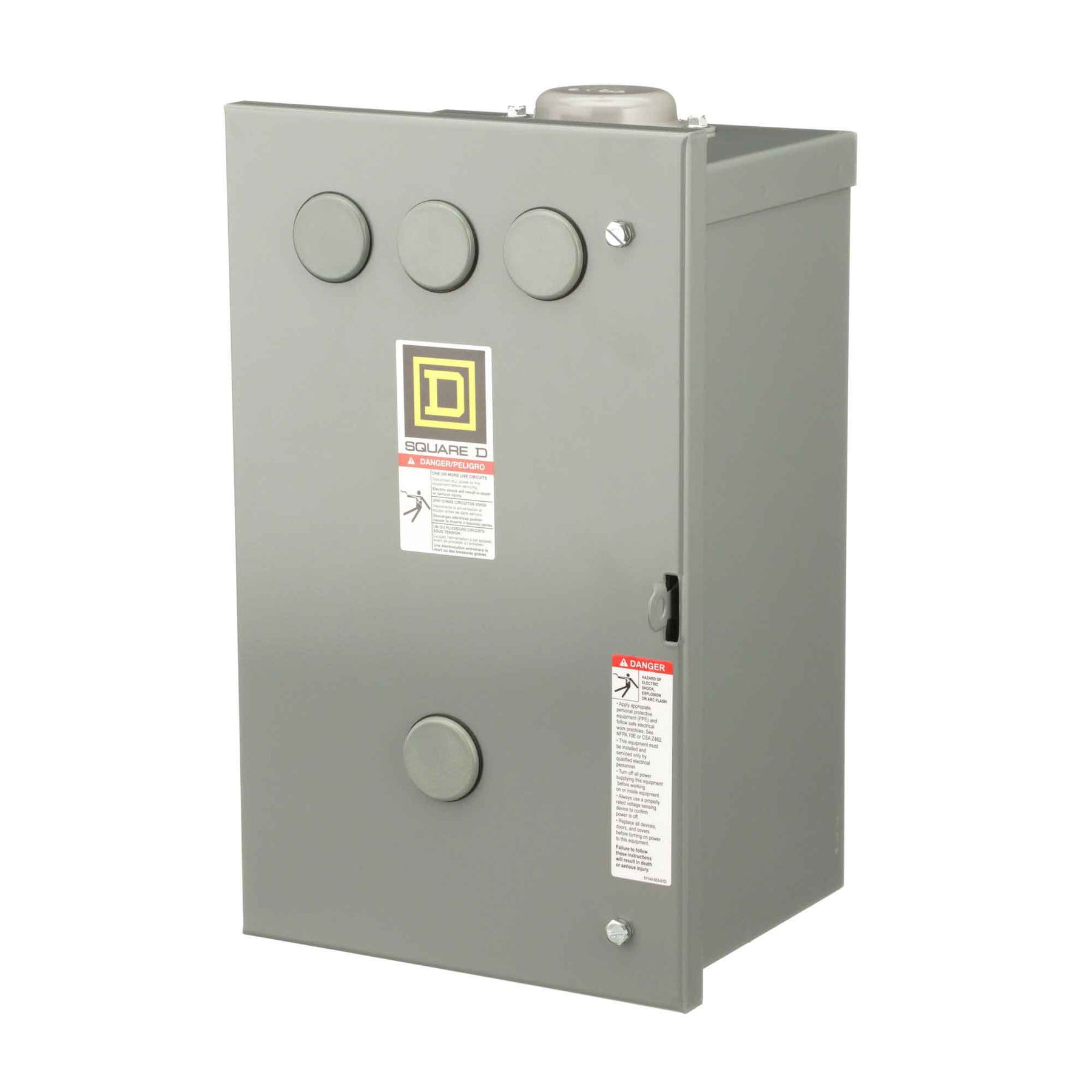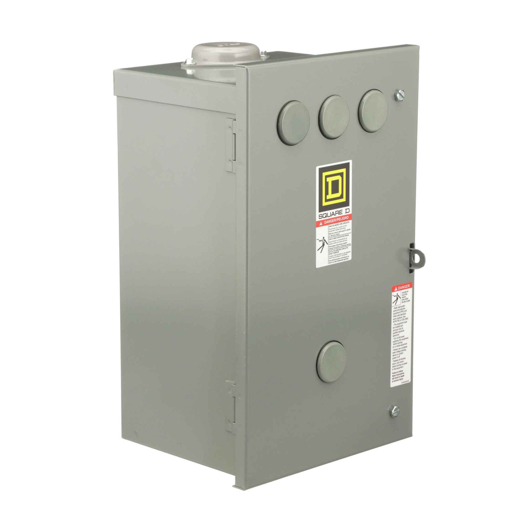 8903LH40V02, Square D, Class 8903, multipole lighting contactor, electrically held, type L, 4P, 3PH, 30A, 600V, complete with NEMA type 3R Rainproof enclosure and 110/120V coil