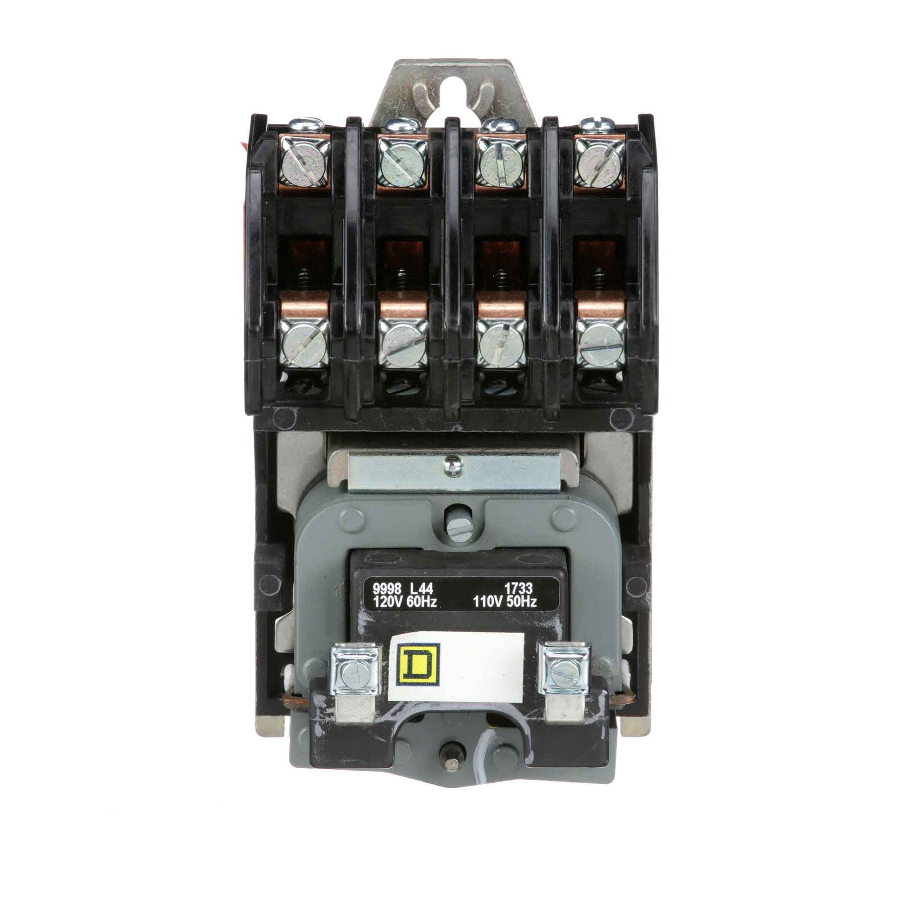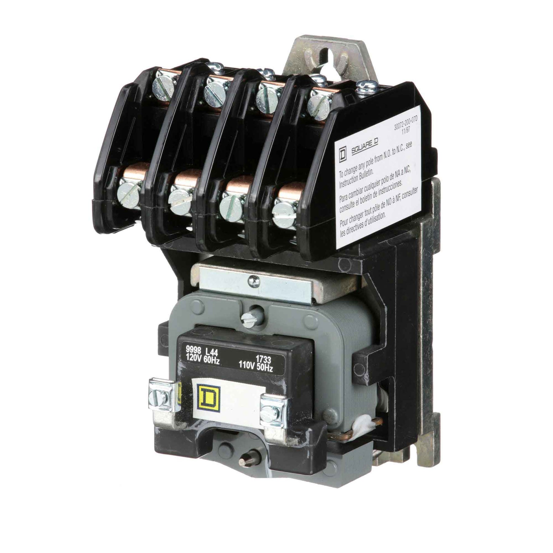 8903LO40V02, Square D, Class 8903, multipole lighting contactor, electrically held, type L, 4P, 3PH, 30A, 600V, complete with NEMA open type and 110/120V coil