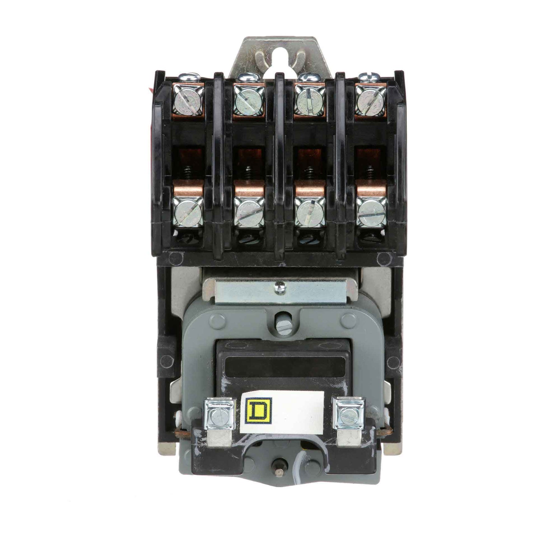 8903LO40V04, Square D, Class 8903, multipole lighting contactor, electrically held, type L, 4P, 3PH, 30A, 600V, complete with NEMA open type and 277V coil