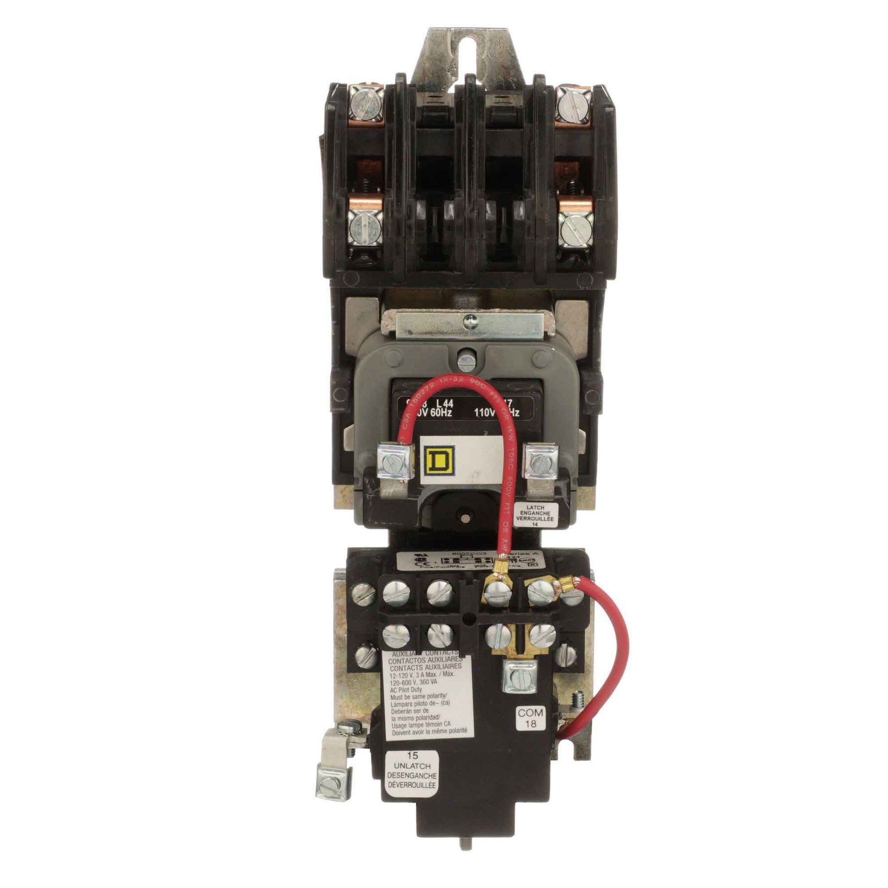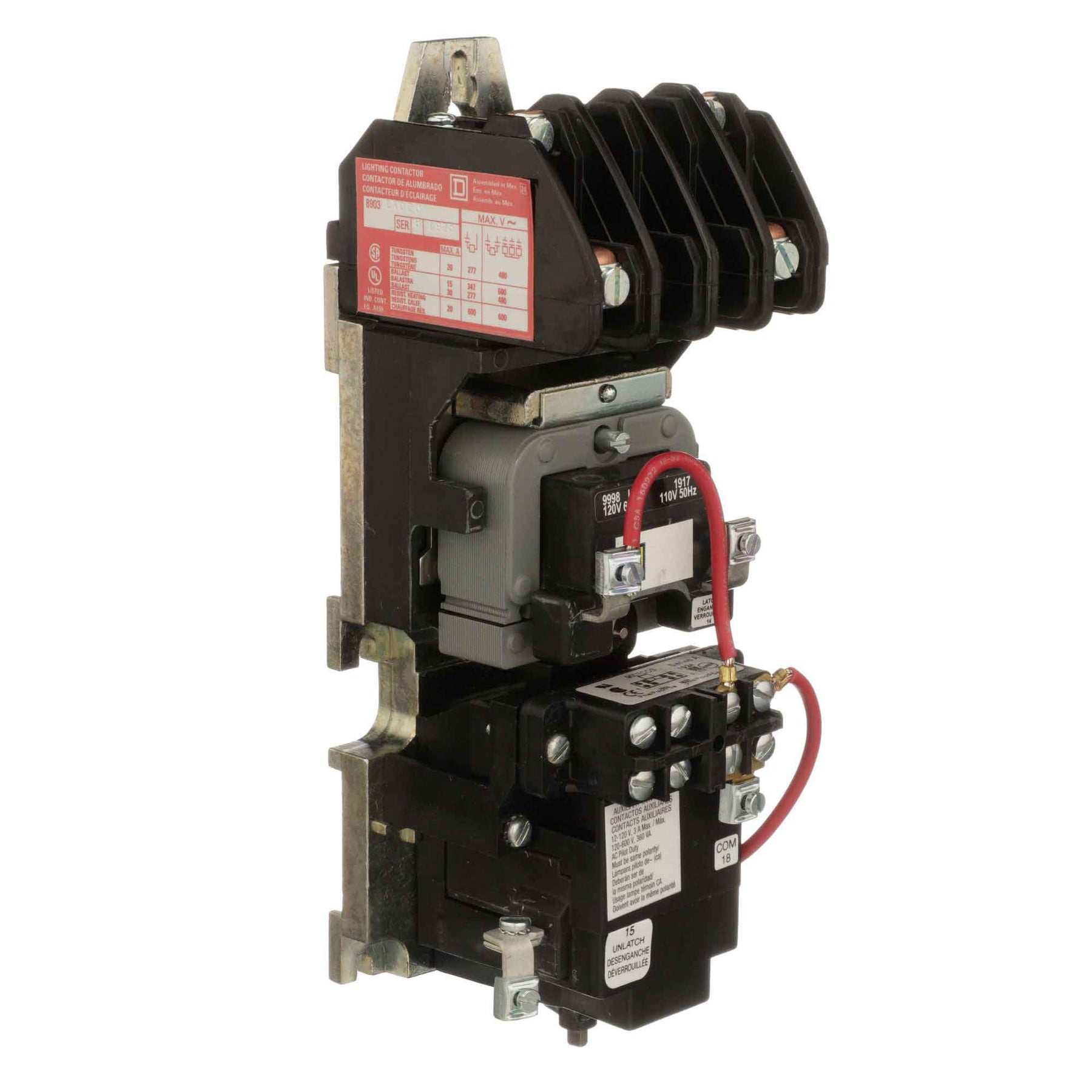 8903LXO20V02, Square D, Class 8903, multipole lighting contactor, mechanically held, type LX, 2P, 1PH, 30A, 600V, complete with NEMA open type enclosure and 110/120V coil