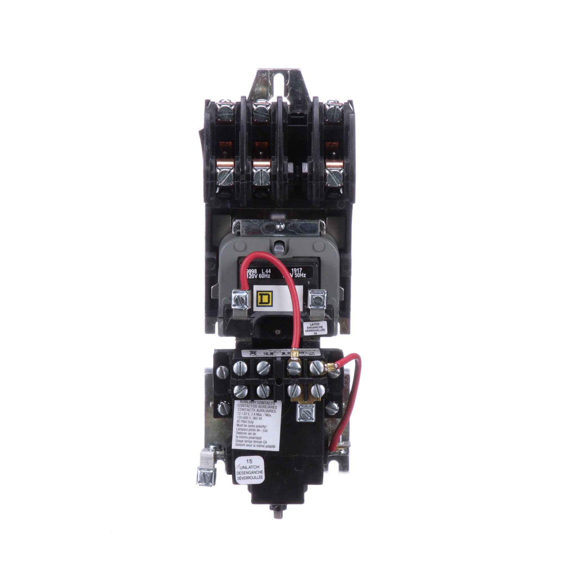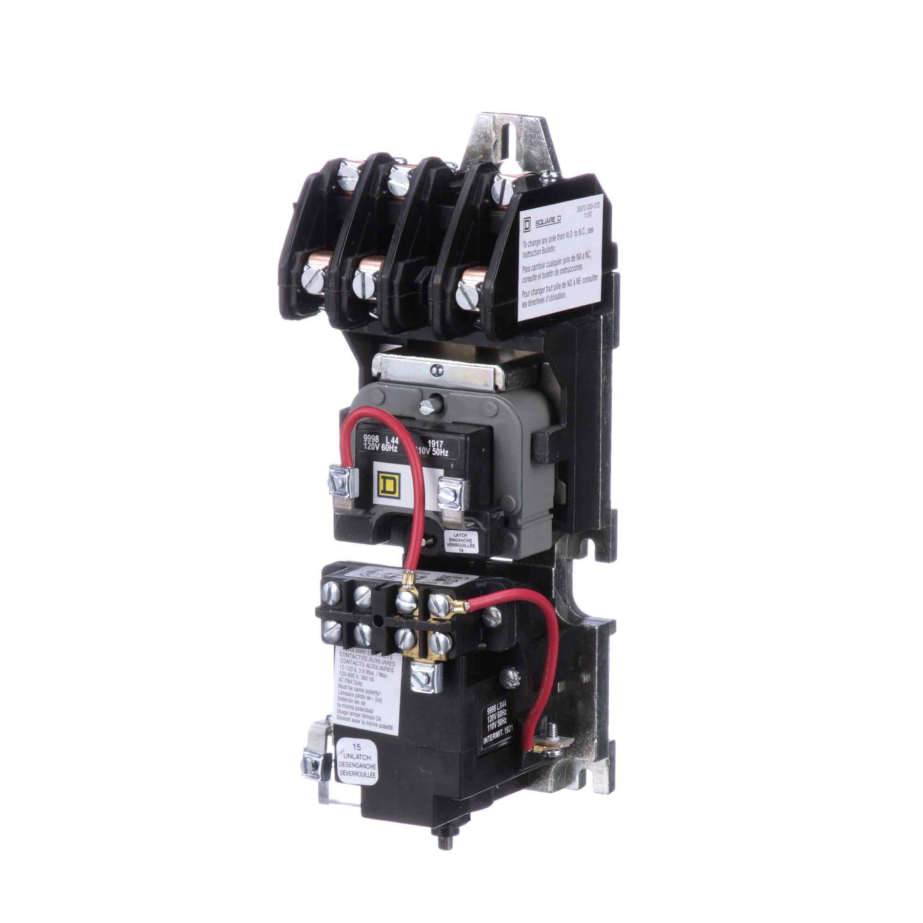 8903LXO30V02, Square D, Class 8903, multipole lighting contactor, mechanically held, type LX, 3P, 3PH, 30A, 600V, complete with NEMA open type enclosure and 110/120V coil