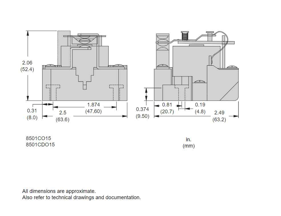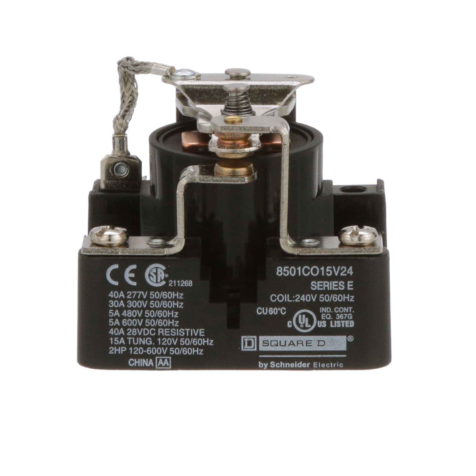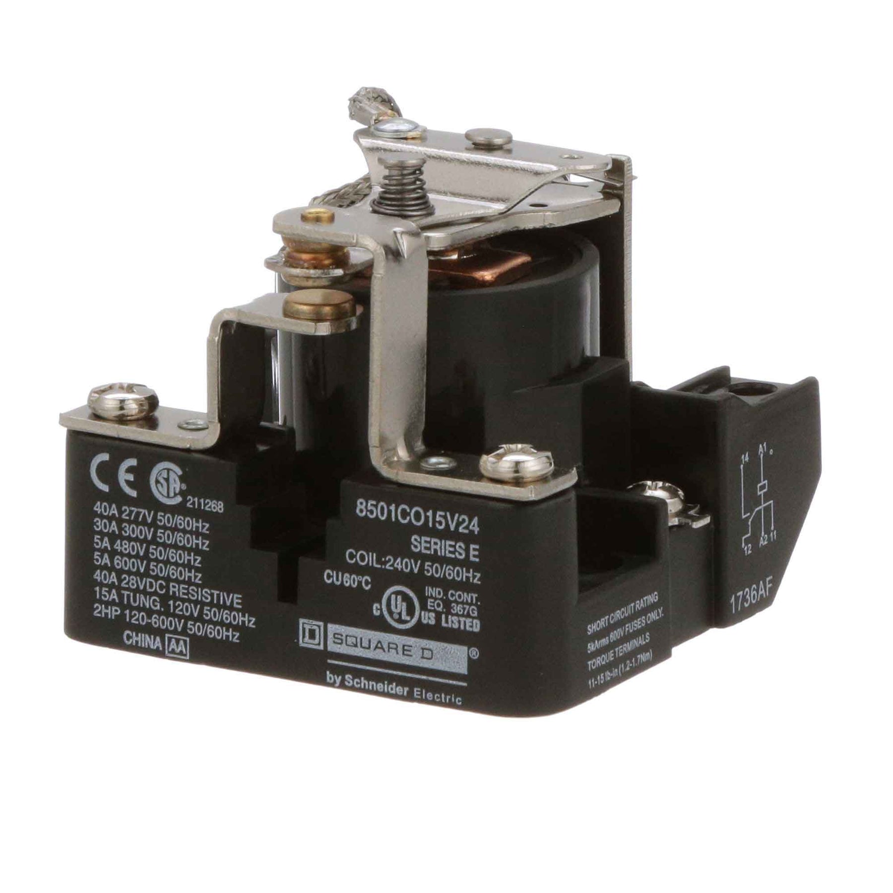 8501CO15V24, Square D, Class 8501, motor control part and accessory, Relays, type C, UL listed, CSA certified, 1 N.O. / 1 N.C. fixed contacts, complete with 240 VAC 50/60Hz standard coil, 300V/600V, 30A @ 300Vac, 5A @ 600Vac, suitable for use with Class 8501 motor control systems