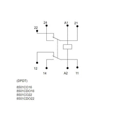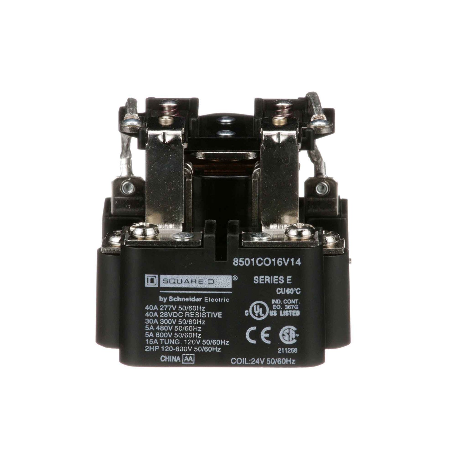 8501CO16V14, Square D, Class 8501, motor control part and accessory, Relays, type C, UL listed, CSA certified, 2 N.O. / 2 N.C. fixed contacts, complete with 24 VAC 50/60Hz standard coil, 300V/600V, 30A @ 300Vac, 5A @ 600Vac, suitable for use with Class 8501 motor control systems