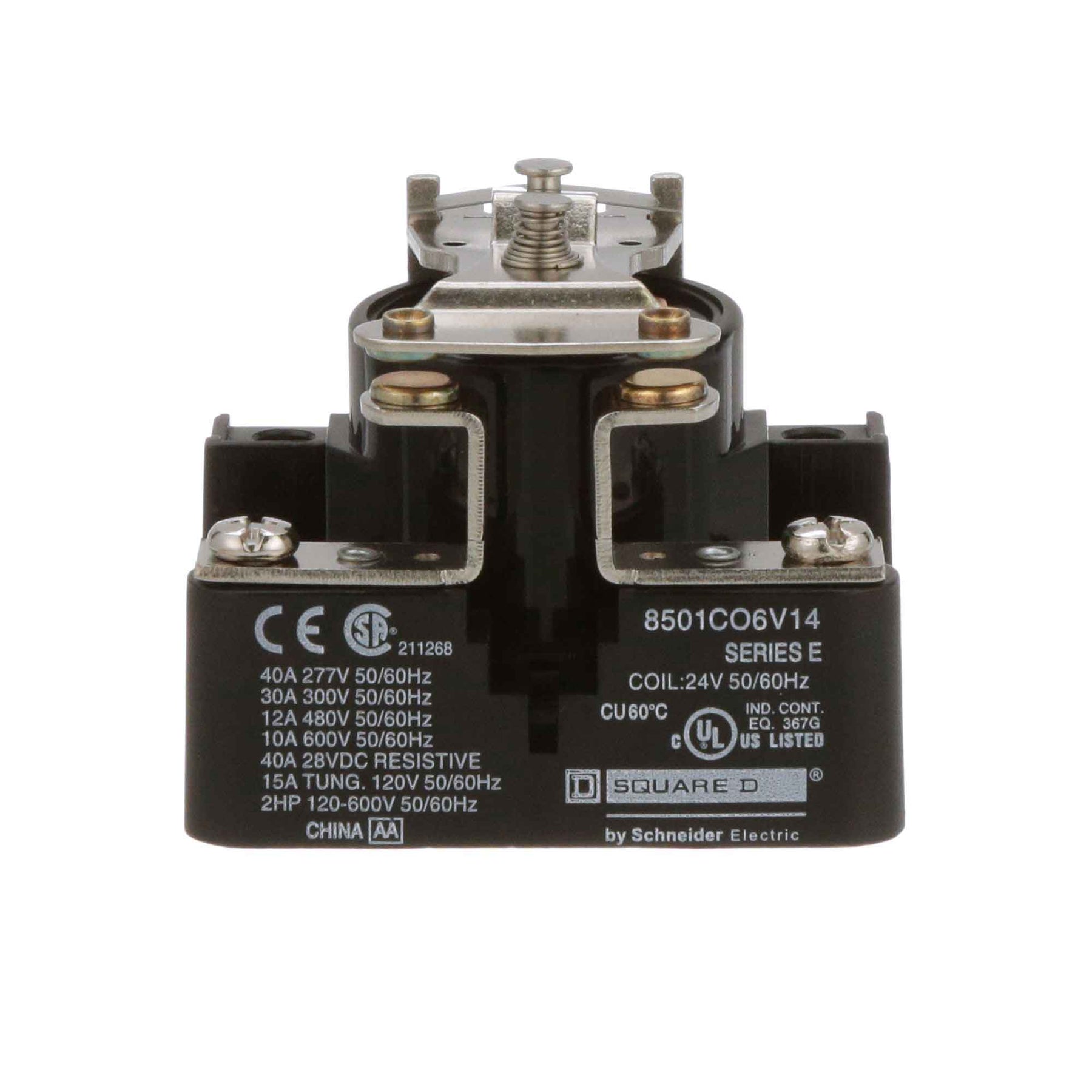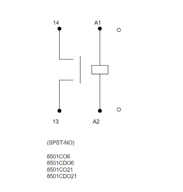 8501CO6V14, Square D, Class 8501, motor control part and accessory, Relays, type C, UL listed, CSA certified, 1 N.O. Fixed contacts, complete with 24 VAC 50/60Hz standard coil, 300V/600V, 30A @ 300Vac, 10A @ 600Vac, suitable for use with Class 8501 motor control systems
