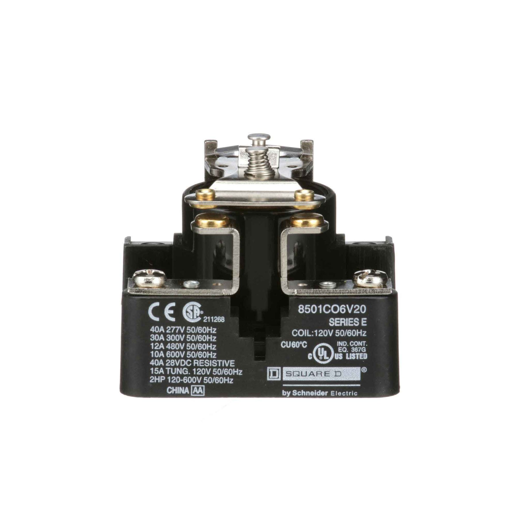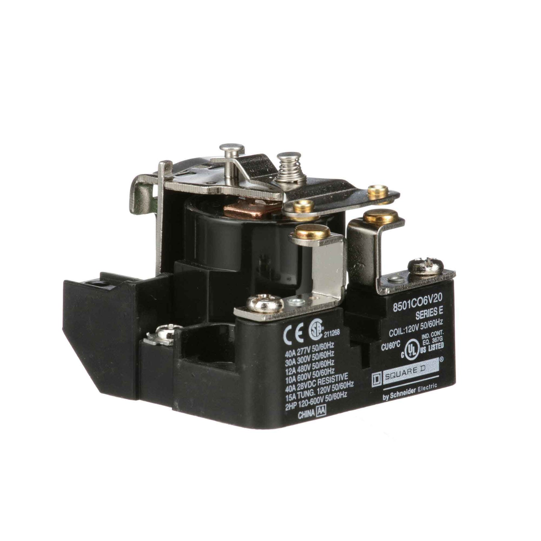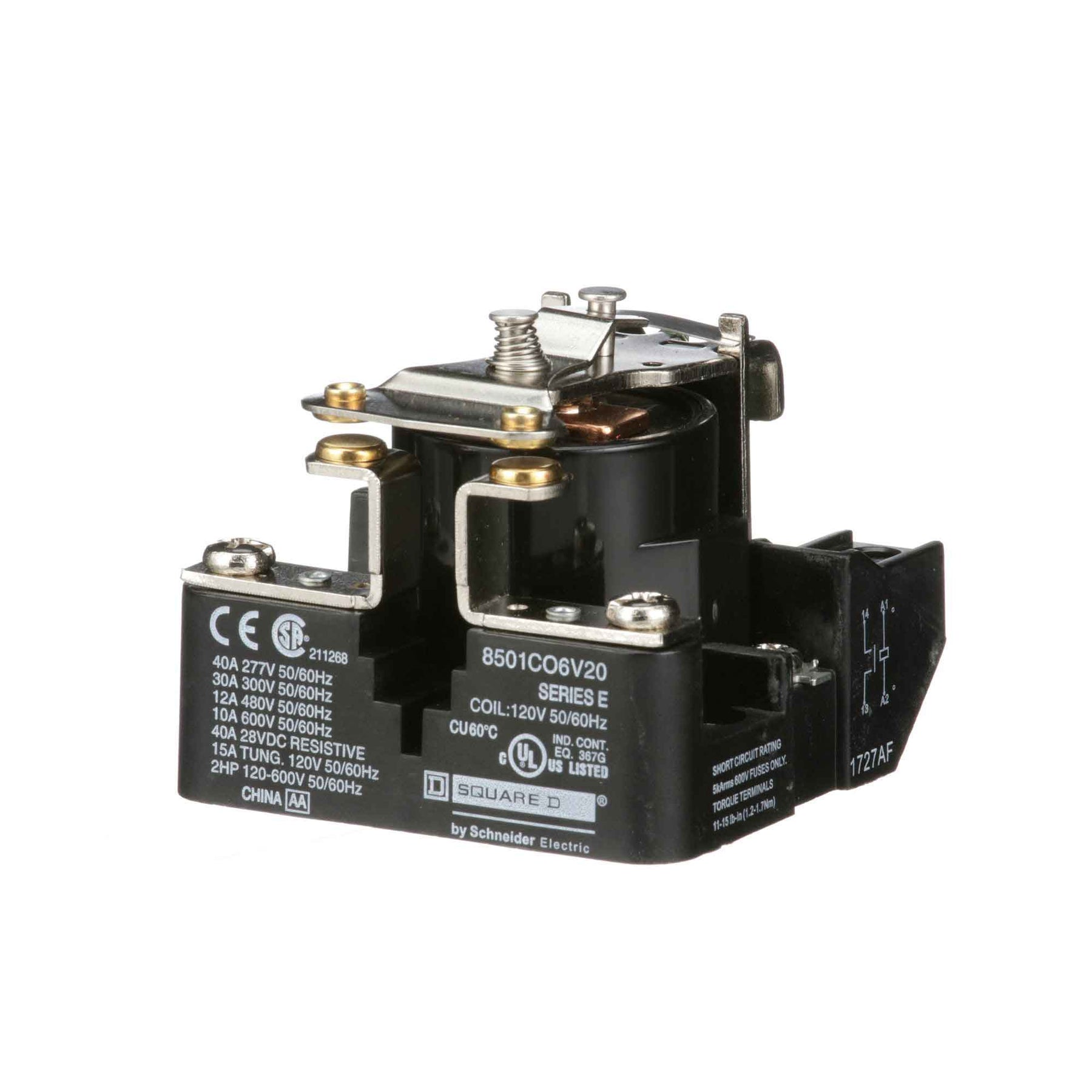 8501CO6V20, Square D, Class 8501, motor control part and accessory, Relays, type C, UL listed, CSA certified, 1 N.O. Fixed contacts, complete with 120 VAC 50/60Hz standard coil, 300V/600V, 30A @ 300Vac, 10A @ 600Vac, suitable for use with Class 8501 motor control systems