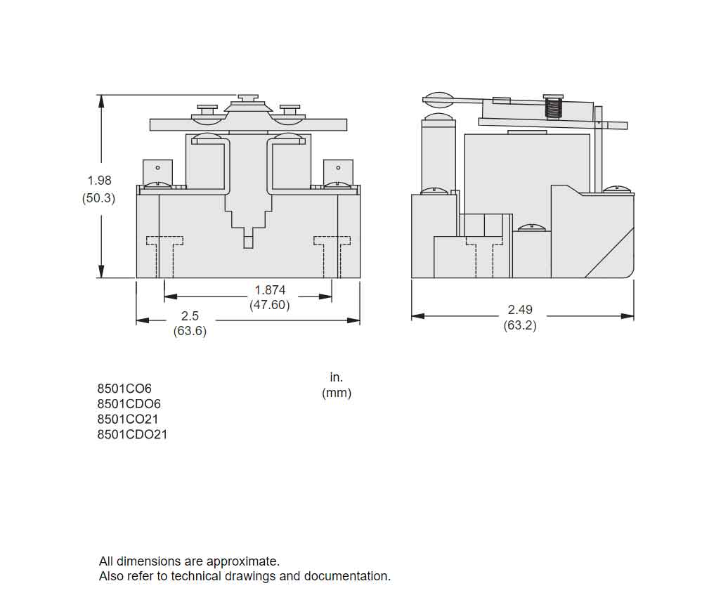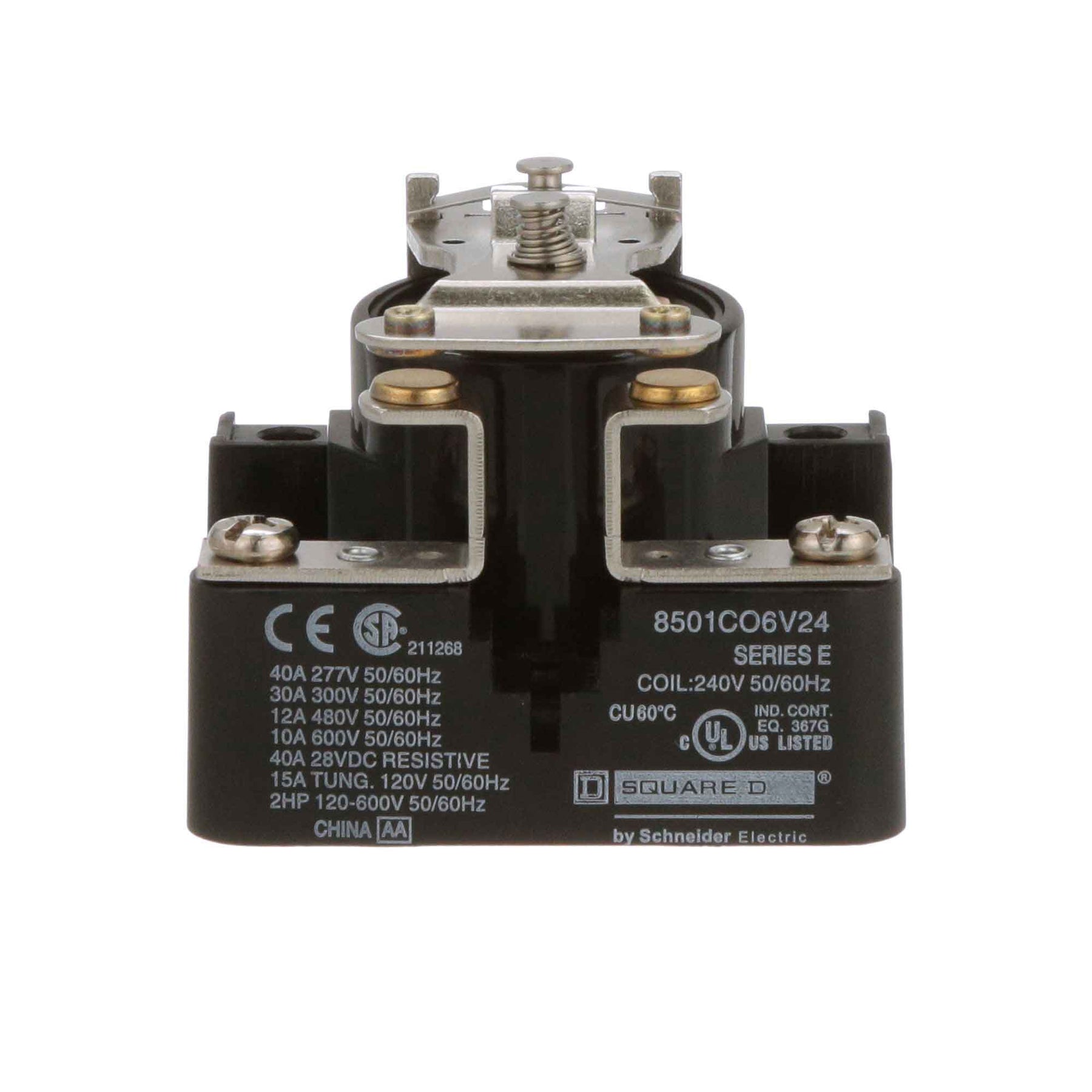 8501CO6V24, Square D, Class 8501, motor control part and accessory, Relays, type C, UL listed, CSA certified, 1 N.O. Fixed contacts, complete with 240 VAC 50/60Hz standard coil, 300V/600V, 30A @ 300Vac, 10A @ 600Vac, suitable for use with Class 8501 motor control systems