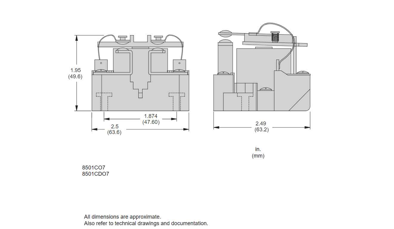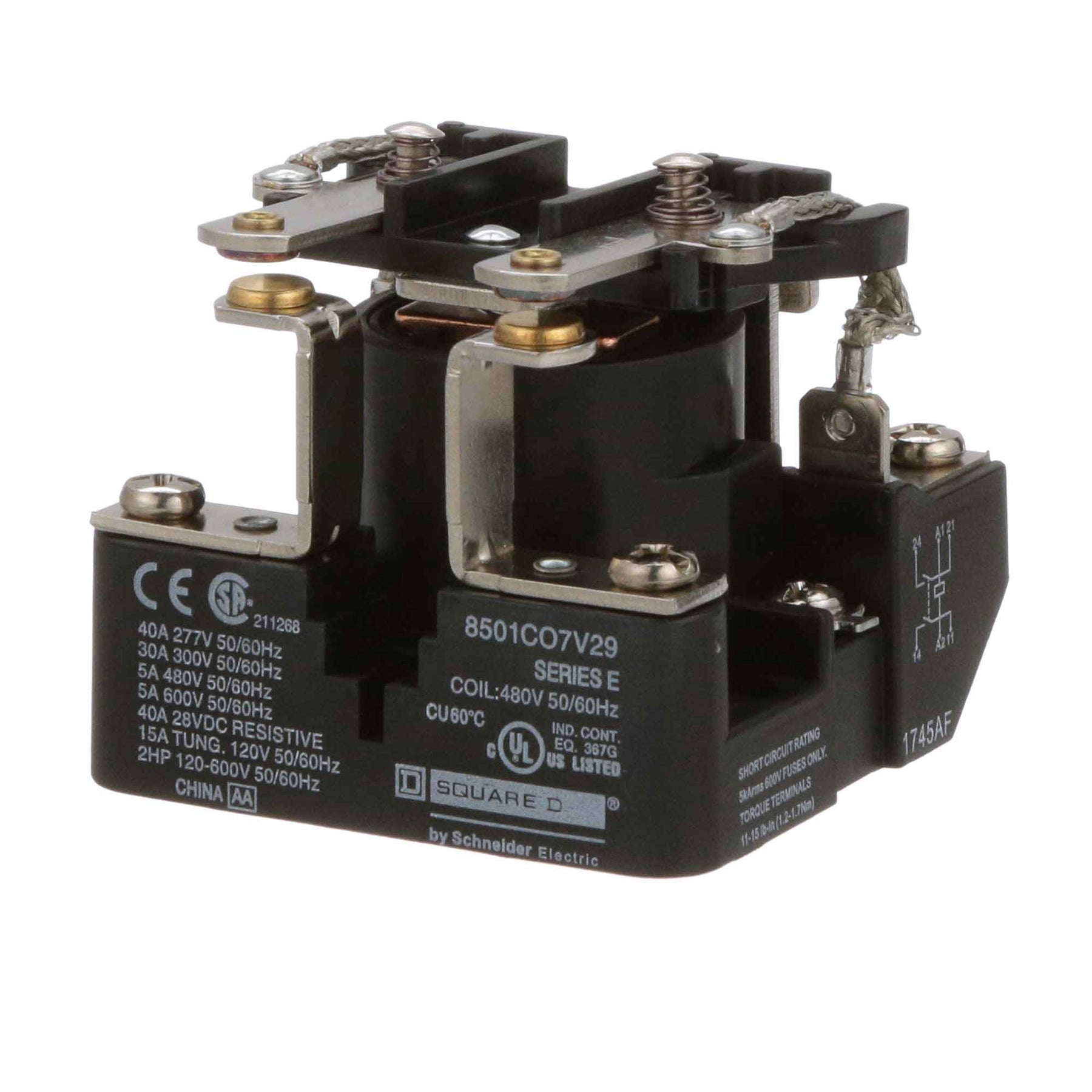 8501CO7V29, Square D, Class 8501, motor control part and accessory, Relays, type C, UL listed, CSA certified, 2 N.O. Fixed contacts, complete with 480 VAC 50/60Hz standard coil, 300V/600V, 30A @ 300Vac, 5A @ 600Vac, suitable for use with Class 8501 motor control systems