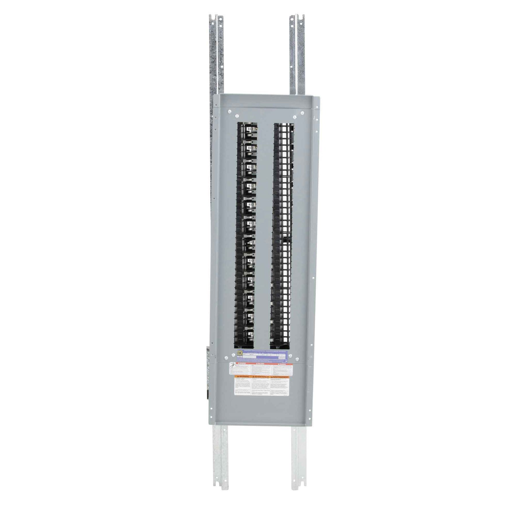 NQ Panelboards are versatile panelboards that feature a wide selection of circuit breakers, accessories, and ready to install kits. NQ Panelboards provide 200% rated neutrals for non-linear loads. NQ Panelboards are convertible from main lug to main breaker. Interior has a maximum voltage rating of 240 VAC and 48 VDC. This NQ Panelboard interior has a main lug and is rated at 400 A three phase. Interior has an interrupt current rating of up to 65 kA. This interior is for a 4 wire system with 72 circuits and has a copper bus bar. Interior is for QOB, QOBVH and QHB branch circuit breakers. This interior provides protection for your commercial and industrial applications. NQ Panelboard interiors are field convertible to top or bottom feed. Some factory installed options are split bus, lighting contactors, compression lugs, surge protection devices, and phenolic nameplates. Interior is 57 inches tall and 10.44 inches wide. Lug connections will accept 1/0 AWG to 750 kcmil aluminum wire. This interior is UL listed and CSA certified. NQ Panelboard interiors can be used for applications such as commercial buildings, industrial buildings, stadiums, and offices.