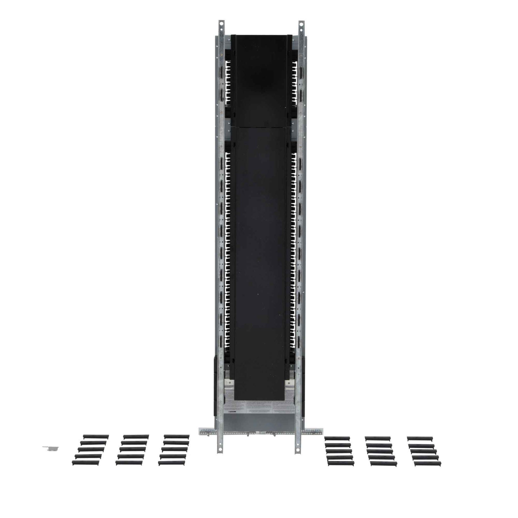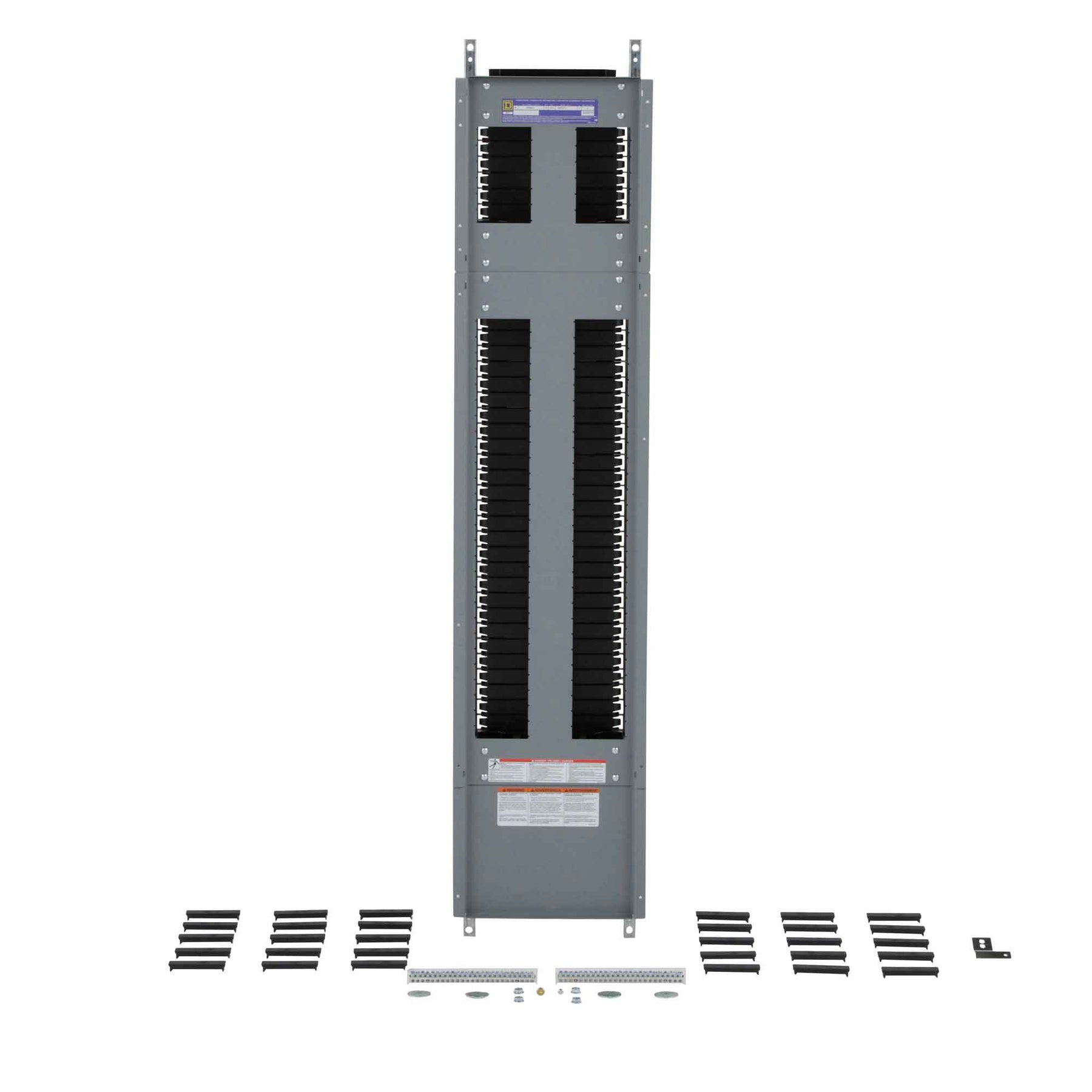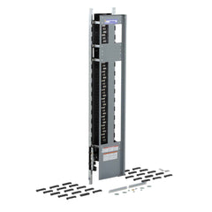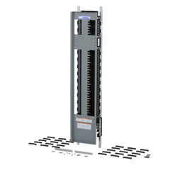 NF Panelboard interiors can be used for applications such as commercial buildings, industrial buildings, stadiums, and offices. These interiors provide protection for commercial and industrial applications. NF Panelboards feature a wide selection of circuit breakers, accessories, and ready to install kits. NF Panelboards are field convertible to top or bottom feed. NF Panelboards are convertible from main lug to main breaker. NF Panelboards can provide 200% rated neutrals for nonlinear loads. Some factory installed options are split bus, lighting contactors, compression lugs, surge protection devices, and phenolic nameplates. The main lugs are rated at 250A 480Y/277 VAC 3 phase. Interior has an interrupt current rating of up to 65 kA. This interior is for a 4 wire system with 66 spaces and has a copper bus bar. Interior is for EDB, EDG, and EDJ branch circuit breakers. Line lug connections will accept 6 AWG to 350 kcmil aluminum wire. The interior is 57 inches tall and 10.44 inches wide. This interior is UL listed and CSA certified.