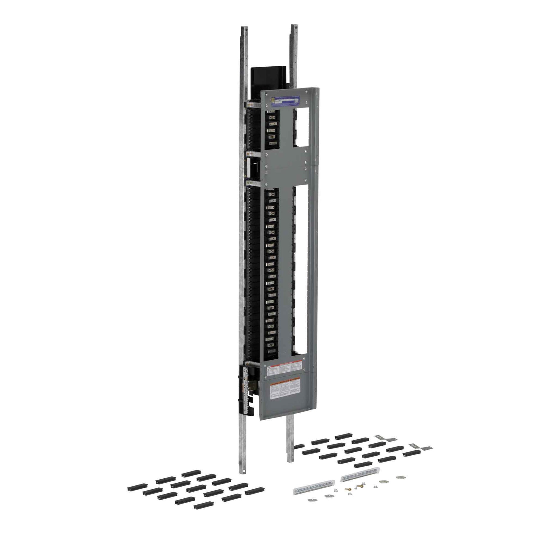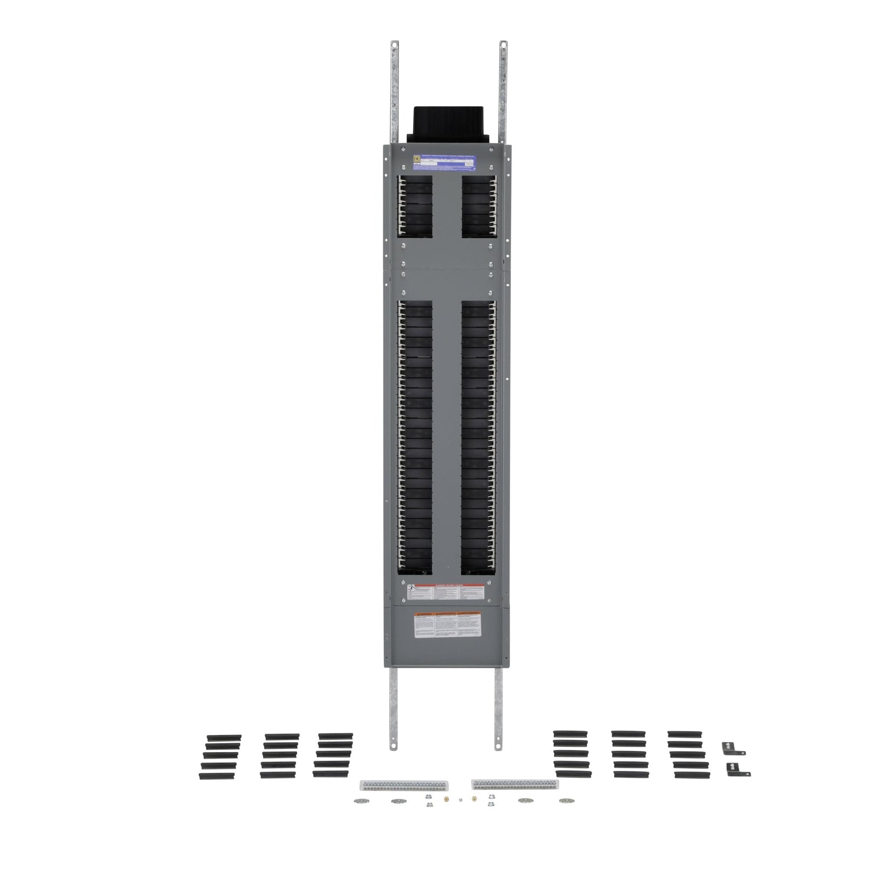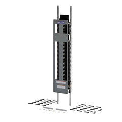 NF Panelboard interiors can be used for applications such as commercial buildings, industrial buildings, stadiums, and offices. These interiors provide protection for commercial and industrial applications. NF Panelboards feature a wide selection of circuit breakers, accessories, and ready to install kits. NF Panelboards are field convertible to top or bottom feed. NF Panelboards are convertible from main lug to main breaker. NF Panelboards can provide 200% rated neutrals for nonlinear loads. Some factory installed options are split bus, lighting contactors, compression lugs, surge protection devices, and phenolic nameplates. The main lugs are rated at 400A 600Y/347 VAC 3 phase. Interior has an interrupt current rating of up to 65 kA. This interior is for a 4 wire system with 66 spaces and has a copper bus bar. Interior is for EDB, EDG, and EDJ branch circuit breakers. Line lug connections will accept 1/0 AWG to 750 kcmil aluminum wire. The interior is 48 inches tall and 10.44 inches wide. This interior is UL listed and CSA certified.